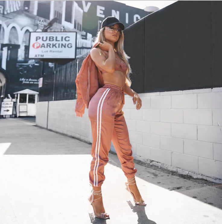 Ladies' Striped Crop & Pants Sportswear Set